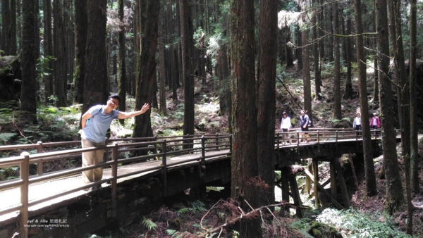 前3.7公里路徑平緩,沿山徑蜿蜒兩側茂密柳杉純林,古木參天,迷人的中高海拔林相,加上舊鐵道與枕木相伴,迷漫一股濃郁的人文歷史氣息。