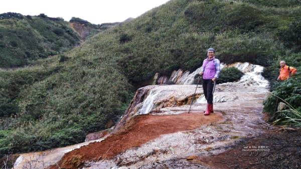 沿著「北34」金水公路往上,約莫10來公尺處,轉入一處小山徑,拉繩陡上,日前連續下雨,腳下泥土容易打滑,偶而還得抓著樹枝,還好,很快就來到瀑布頂,俯視傾瀉而下的水瀑,氣勢格外壯觀。