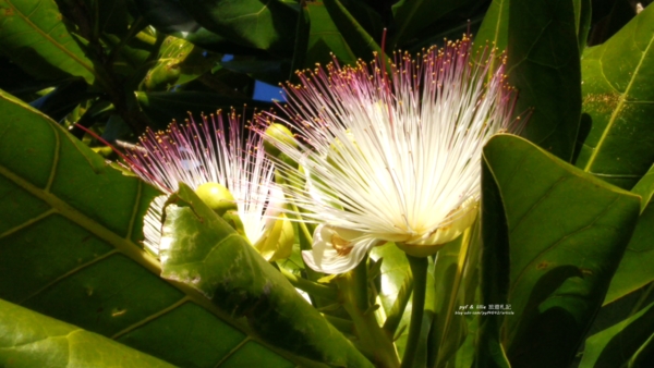 北部常見成串垂掛在樹枝,一串十幾到幾十朵夜間開花的「穗花棋盤腳」,這兒另有與之不同的「棋盤腳」,雖無成串花朵,但單開的花朵卻大得很多,燦爛醒目。