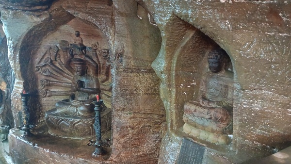 往裡走,山洞的石壁兩側便有許多大小石佛、石像,雖不似敦煌石窟的壯觀,但這些石佛像當應該頗值得欣賞。