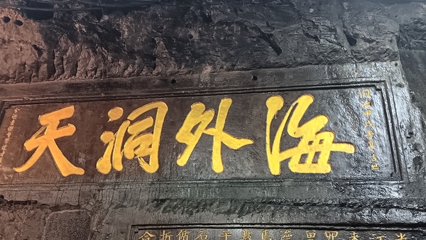 「仙洞巖」的洞穴深約80公尺,進入洞內,迎面左側石壁兩幅巨大描金「仙洞」、「海外洞天」等清光緒、同治年間的石刻壁字清晰可見,前者為光緒十二年(1886年)時,三水梁純夫書寫「仙洞」兩個大字,後者為同治十三年(1874年)季夏分巡台澎督學使者夏獻綸與張斯桂至此時留下。