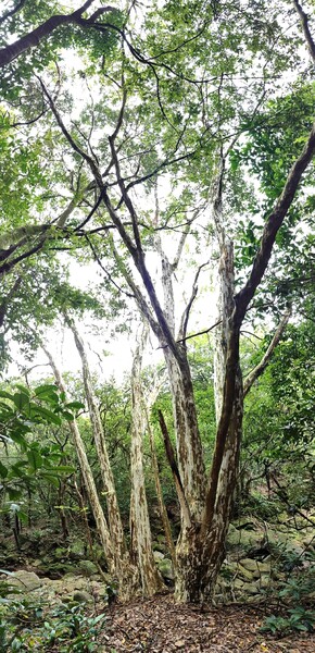 一路也出現巨大「九芎樹」,這屬台灣的原生樹種,耐旱耐瘠,主要生長在潮濕的崩塌地,是良好的水土保持樹種,尤其早年先民居住地旁常會見著「九芎樹」。