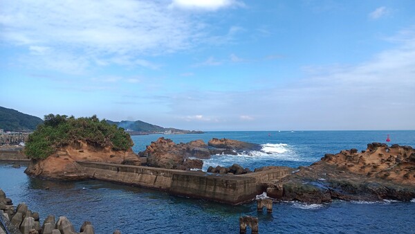 除了象鼻岩、深澳岬角步道,往前走左側山腰就會看到深澳鐵道彩繪自行車緩緩行進、號稱北部多良車站的八斗子海景車站、海天步道(望海巷跨海景觀橋這兒的海岸還是令人驚艷的),再往前有潮境公園、海科館、正濱漁港。