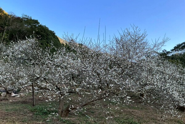 好友的友人隱居南投山林,如此因緣際會,意外走了一趟滿山坡盛開的梅園,如夢似幻。