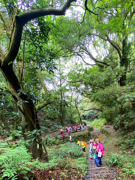 從竹子湖派出所循「環七星山人車分道」中的「陽金公路段」步道 ,除了避開公路車流,一路樹蔭覆蓋、環境清幽。