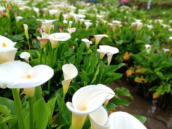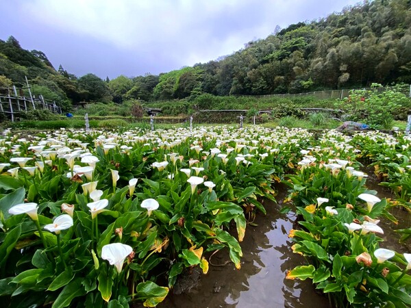 尤其現在是「海竽季」,那一畦畦迤邐到山腳下,開得似如朝天吹響小喇叭狀的白色海竽,襯著遠方綠色山巒,真是令人滿心喜悅。