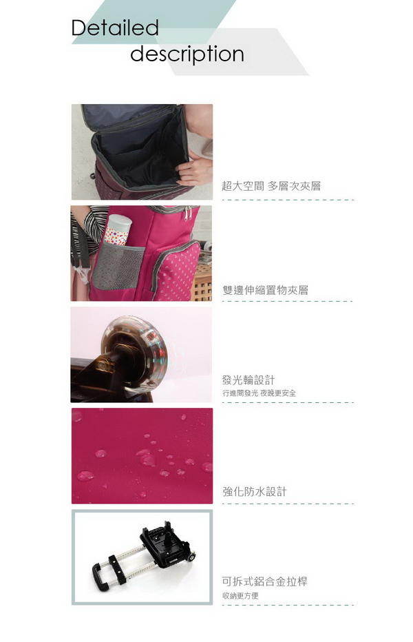 Nuport妮柏兒 品牌款萬用防水拉桿後背包(湖水藍)心得文