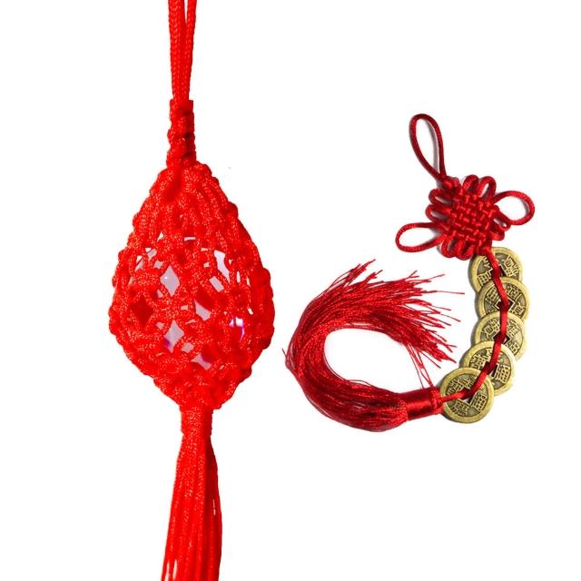 【A1寶石】2入組-桃花紅繩粉水晶球吊飾-五帝錢化煞鎮宅-招人緣貴人防小人口角(同葫蘆-五帝錢-山海鎮功效)如何搭配