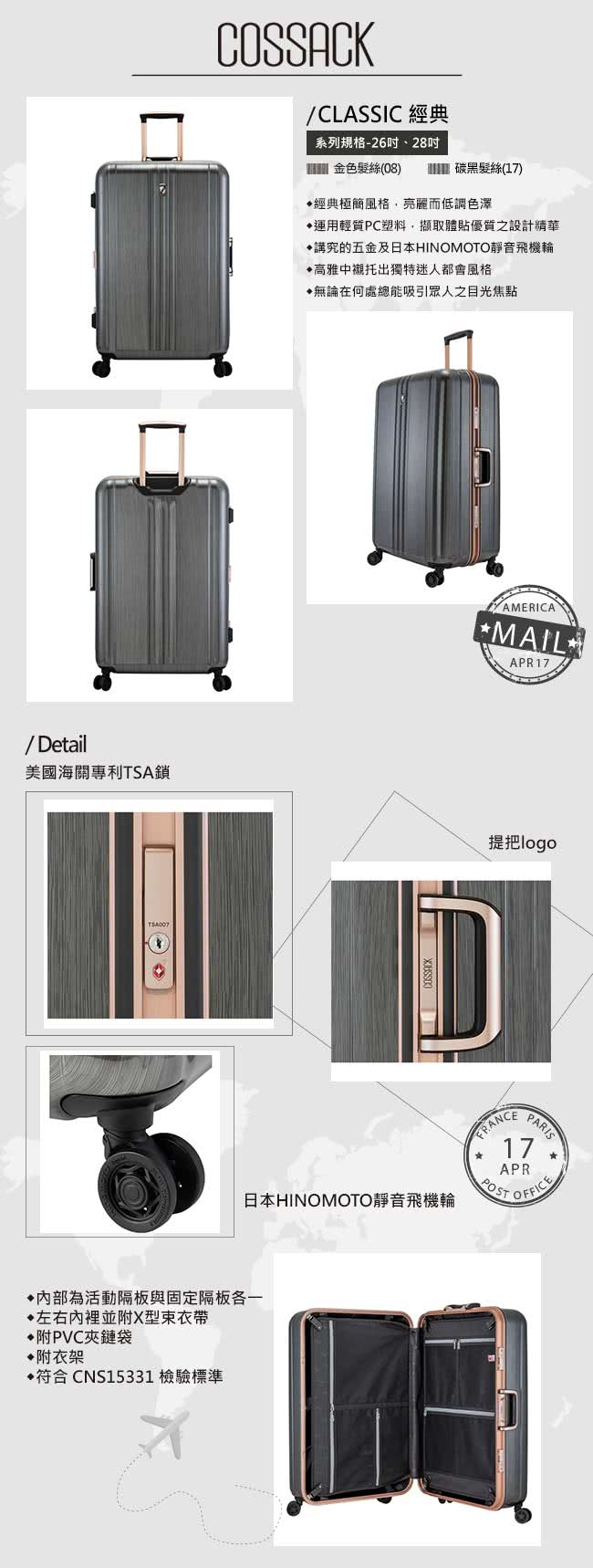 【COSSACK】CLASSIC經典- 28吋PC鋁框行李箱(兩色可選)穿搭技巧,【COSSACK】CLASSIC經典- 28吋PC鋁框行李箱(兩色可選)穿搭教學