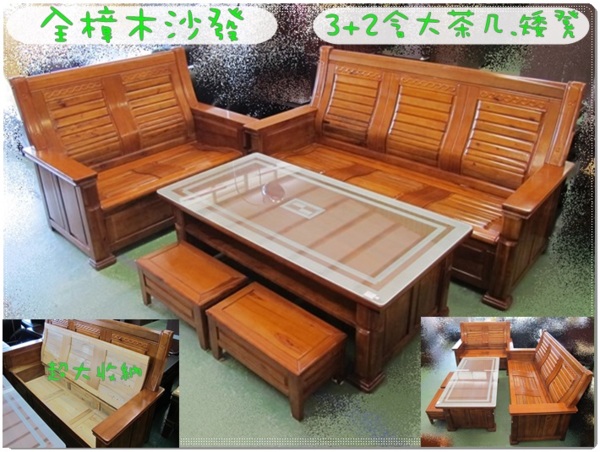 老主顧二手家具!新貨-全樟木3+2沙發組(含大茶几矮凳)更多原木沙發好康優惠都在老主顧二手傢俱館~