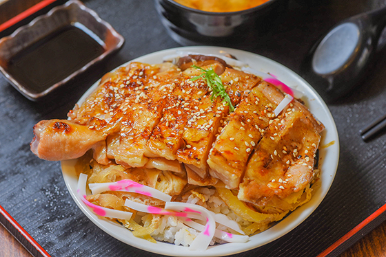 嚴選鮮嫩雞肉,表面炙燒後撒上白芝麻,散發誘人氣味,搭配滑嫩蛋液、香甜洋蔥,與米飯一同交織出極致口感。