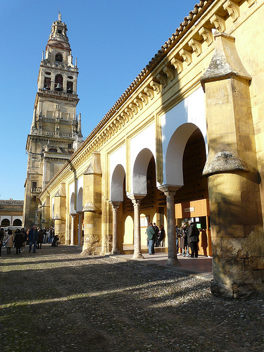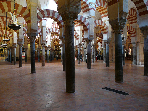 科爾多瓦清真寺位於科爾多瓦城歷史文化中心地帶,是穆斯林在西班牙遺留下來的最爲美麗的建築之一。穆斯林埃米爾阿卜杜勒一世在西元785年下令在古老的西哥特聖•比森特教堂的廢墟之上修建清真寺。在接下來的幾個世紀,清真寺又經過不斷翻修和擴建。最後一次擴建是由阿爾曼左爾在西元987年下令完成的。這次擴建之後,清真寺的內部變成了一個由雙重連環拱門和馬蹄形穹頂構成的石柱迷宮。1523年,伊斯蘭教被基督教征服後,在這座清真寺內修建了大教堂,其中包括最大的宗教組畫、巴洛克雕塑和由桃花心木做成的唱詩班座椅。壁龕是穆斯林世界中最爲重要的一件東西,也是這座清真寺內最高貴的東西。壁龕裝飾有拜占庭式馬賽克,由雕花大理石製成。橙院是通往整個清真寺的入口。