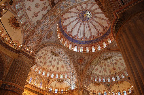 座落於土耳其首都:伊斯坦堡舊城區,與聖索菲亞大教堂遙遙相對,是伊斯坦堡最具代表性的建築。藍色清真寺建於17世紀,大圓頂直徑達27.5米,另外還有4個較小的圓頂、30個小圓頂,大小圓頂及尖塔是清真寺不可或缺的建築元素。