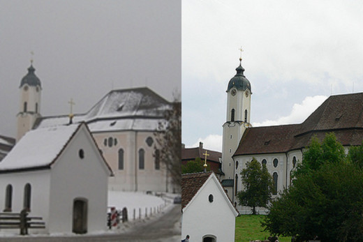 就此修道院院長被信徒無比虔誠的精神所感動,於是發動募款籌建一座華麗教堂取代小禮拜堂,並由當時著名的一對兄弟建築師( 多明尼各、哲因馬曼 ),兩人共同設計,在1746年動工而到1754年舉行獻式,不過因為管風琴的設置及內部工程持續進行,一直到1757年才正式落成。教堂內精美的祭壇、壁畫及所有的雕飾均為洛可可之風格,無比的富麗堂皇,被譽為德國洛可可式教堂的經典代表建築。