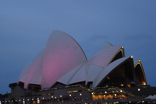 澳洲的象徵-雪梨歌劇院: 雪梨歌劇院是最能代表澳洲的建築物,更可以說是雪梨市的靈魂,並列於舉世文明的建築物之列。雪梨歌劇院從1959年開工以來,因為施工時數次延期,曾被人譏笑為「未完成的交響曲」。外觀有如一片片巨大的貝殼,費時14年才落成揭幕(建築費用高達一億二百萬澳元)。開幕時伊麗莎白女王二世親臨。