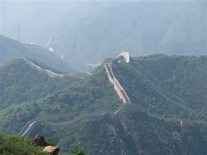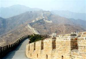 長城是中國古代規模最大的防禦性軍事工程,東起山海關,穿過高山,越過深谷,伸蜒於沙漠和草原,一直到達終點嘉峪關,全長1.2萬餘華里(約6000公尺),故稱萬里長城。