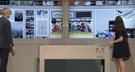 下圖就是Adobe在MAX大會上展示的Project Context大型觸控屏,這是Adobe與美國《連線》(Wired)雜志合作一年的成果,頗似豎起來的Surface桌面(這里說的不是Surface平板,而是最初的Surface設備)。