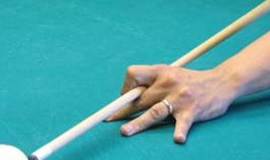 打撞球手架桿也是打好球的關鍵,就象槍械的膛線一樣,如果手架桿姿勢不當或不穩都將引起擊球不準確,一般的手架桿都是手指拱起,拇指和食指交叉或扣成環形使球桿依托手指擊球,見下圖所示。
