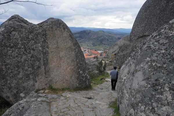 那道於八百年前所修建的「要塞遺址」。高大而結實的城牆,隨着山勢而起伏,穿梭於巨石群之間。