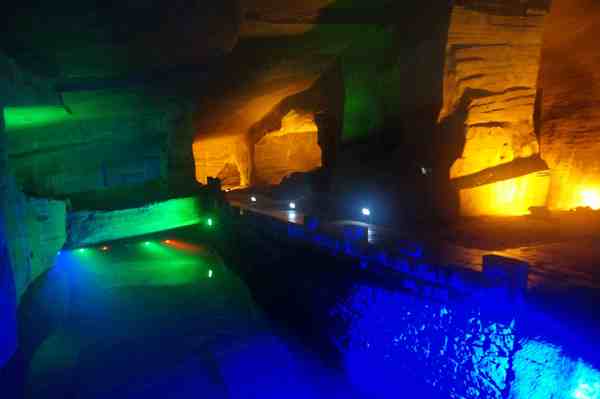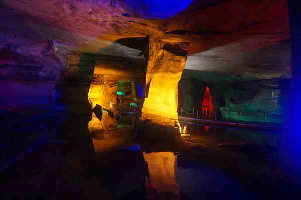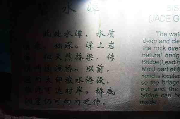特别值得一提的是洞口处的通海桥,桥下一潭清澈见底的泉水哗哗作响,很可能存在活的水源。溯流而下,到了洞内最低处,石壁清晰可见精雕细刻的花纹。虽然这里已经位于新安江水面以下2米,上下落差有25米,但是洞内通风状况良好,并无任何不适感觉。另外,洞窟的怪异构造使得声波被石壁吸收,无论多么大声喧哗,在洞内都听不到一丝回音。