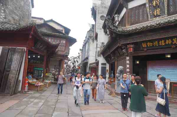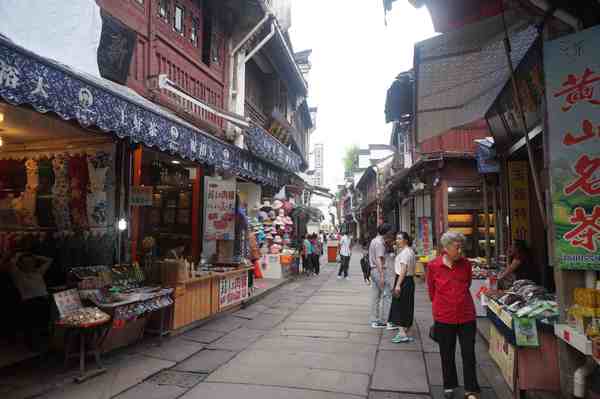 屯溪老街:伴隨著徽商的發展而興起的。早在上世紀二三十年代,已有《滬杭大商埠之風》,盛極一時。老街全長1.5公里,街寬7米,老街店面一般都不大,但內進較深,形成《前店後坊》、《前店後庫》、《前店後戶》的特殊結構,因更顯老街的《老滋老味》。老街的魅力傾倒了影視界,至今已有百餘部影視作品是在老街拍攝,業內人士稱之為《活動著的清明上河圖》。