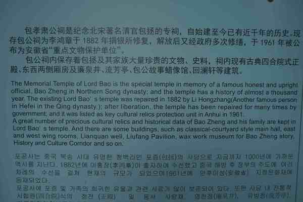 合肥包公祠是合肥祭祀包拯的專祠,位於合肥市廬陽區,是中國各地包公祠中延續時間最長的。全稱為「包孝肅公祠」,「孝肅」,是宋仁宗在包公死後賜給他的諡號。1961年包公祠被列為安徽省省級重點文物保護單位,1981年被重新公布為第一批省級文物保護單位。