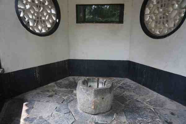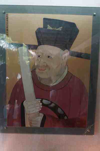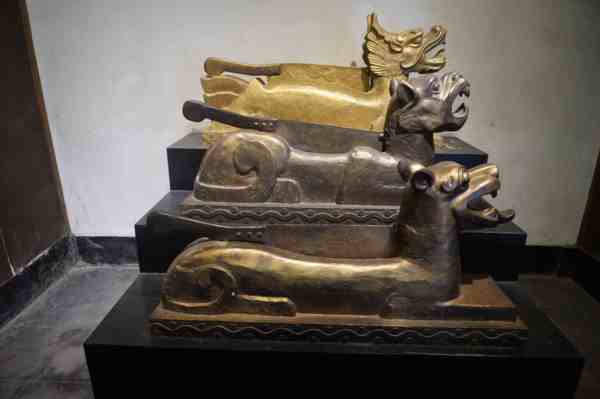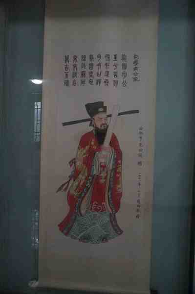 擺在右側的還有擺在大堂一側的三把銅鍘:龍頭鍘、虎頭鍘和狗頭鍘,這是包公公正的象徵。