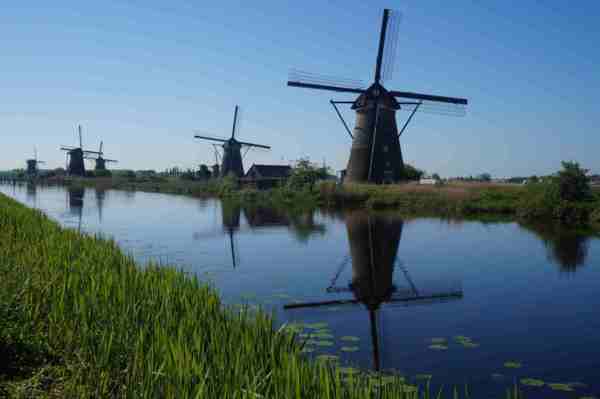遊客可步行或騎自行車(1小時3歐元)或搭船參觀這成排的風車。
