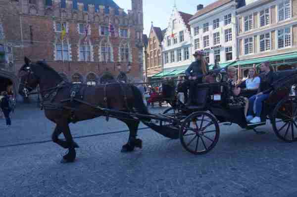 布魯日的市集廣場最醒目的地標「鐘樓」,名列世界遺產之一,已有七百年的歷史,四十七座重達二十七公噸的大鐘琴,依舊全年無休的響徹雲霄,爬上三百六十六格階梯,登上鐘樓頂,布魯日的美景就盡收眼底。
