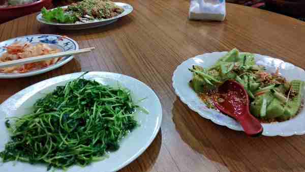 沒照到米干。 右邊綠色的是豌豆粉,也是名菜。