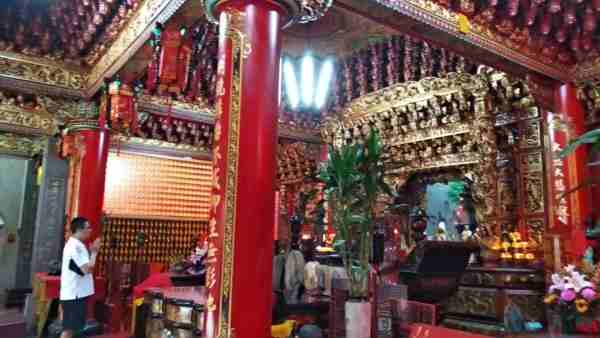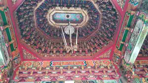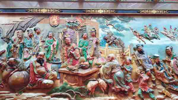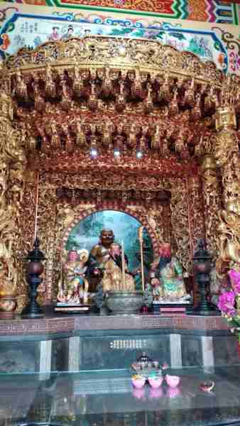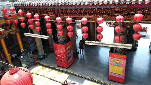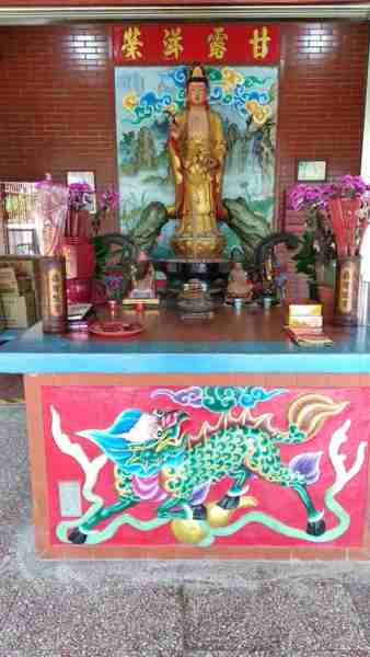 桃園觀音的甘泉寺這是一間建於清光緒20 年〔公元1894年〕的觀音寺廟,為一座三進五門的大廟,外觀呈現三進二院的日字形,象徵著太陽的光明。