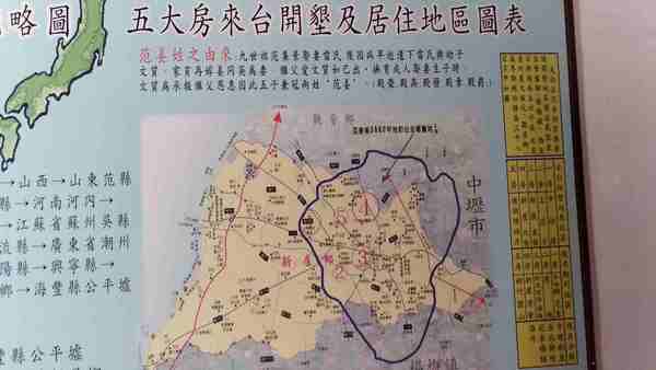 范姜家族在新屋歷經二百餘來的經營,五大房分立,在祠堂周遭各自興建大厝,因此形成了古厝聚群。