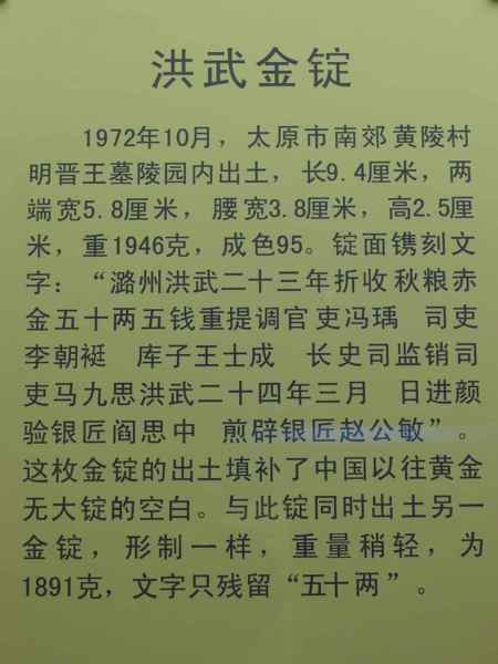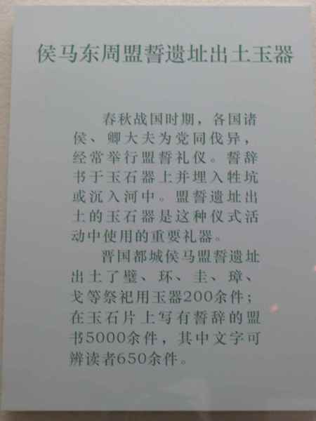 艺术部分的5个展厅分别为:《山川精英》(玉器)、《翰墨丹青》(书画)、《土木华章》(古建筑)、《方圆世界》(古钱币)和《瓷苑艺葩》(瓷器),都从不同侧面展示了古代三晋人民的文化艺术创造。