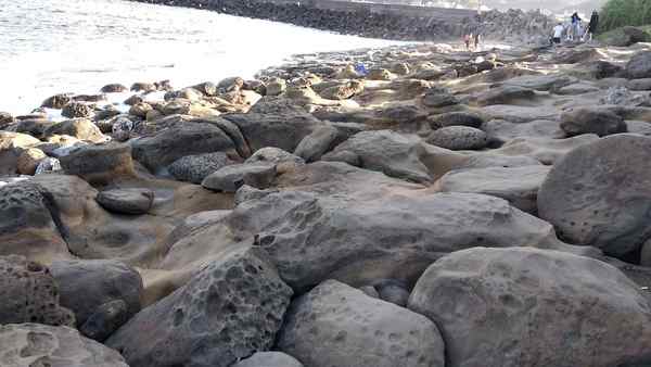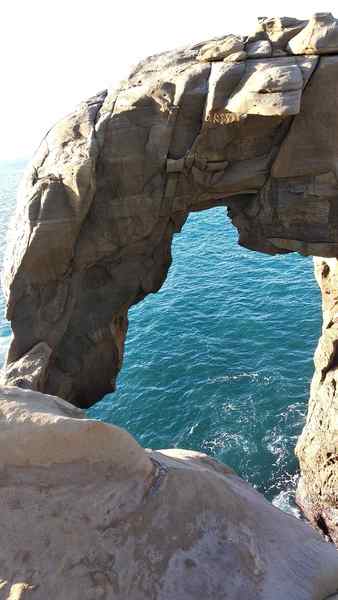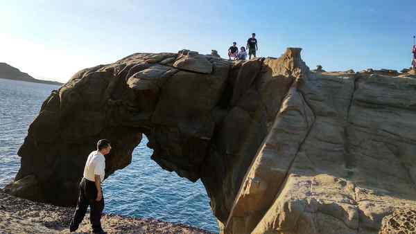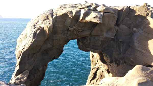 象鼻岩是個巨型的海蝕洞,右邊的大塊岩石就像大象的身體,海蝕洞上彎曲的岩石神似象鼻,故被稱為象鼻岩。