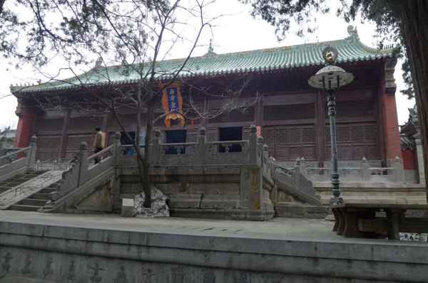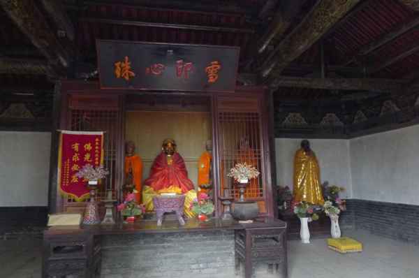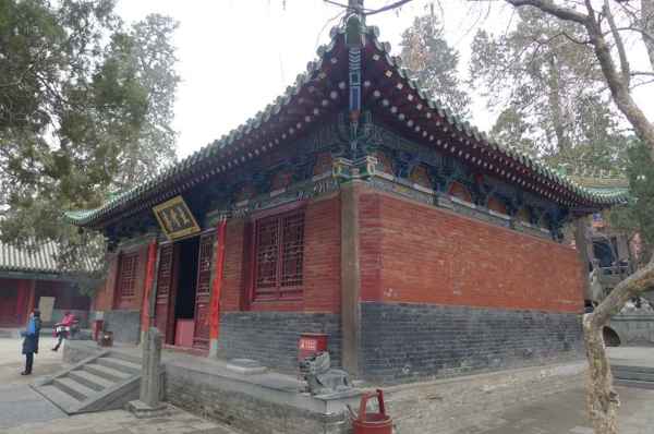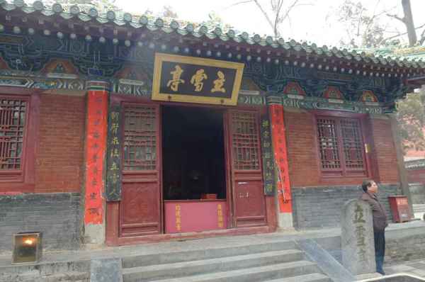 立雪亭,亦名達摩亭,相傳是禪宗二祖「慧可」向初祖「達摩」求法的地方。立雪亭面闊3間、進深3間,單檐廡殿頂,石柱上有明代題字,殿內懸乾隆題「雪印心珠」橫匾,佛龕內供達摩銅像。東間有明萬曆十七年(1589年)的銅鐘1口。