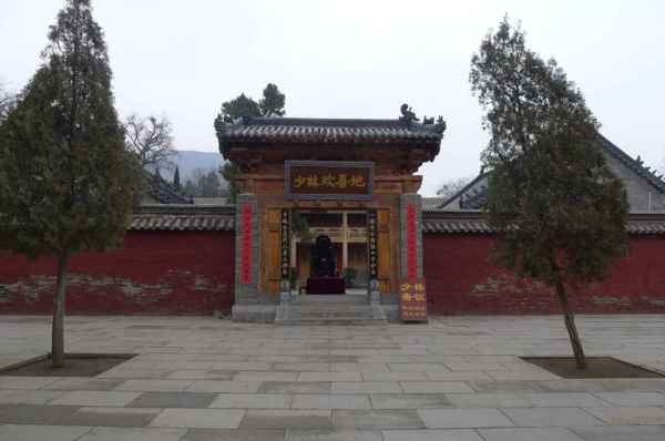 山門,面闊3間、進深3間,單檐歇山頂,門額懸康熙皇帝書題「少林寺」橫匾。山門內塑有彌勒佛和韋馱像,山門左右各建單間硬山掖門。