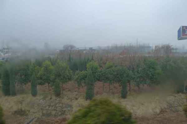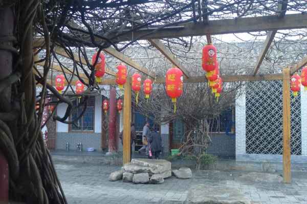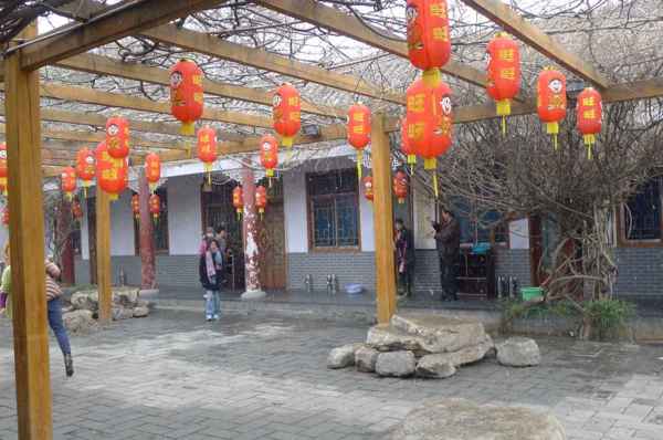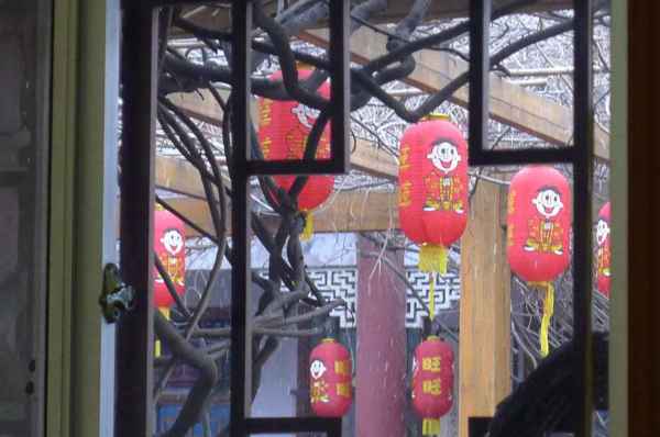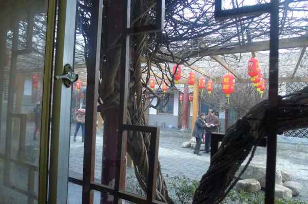 103.2.28 遊罷嵩山少林寺及塔林後, 在附近吃午餐-坐著、吃著、聊著,-居然飄雪了。