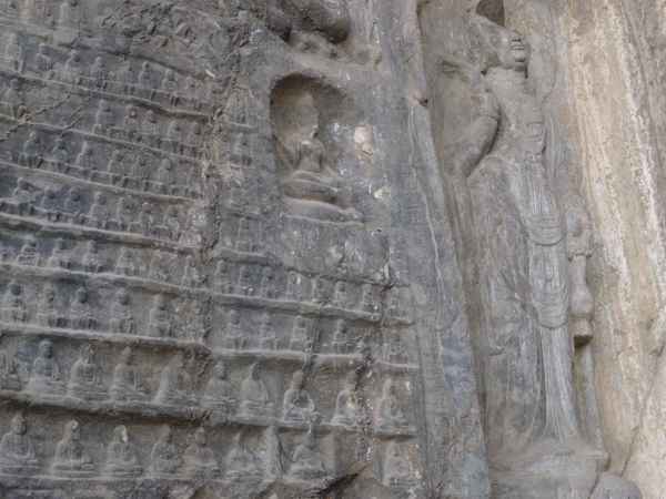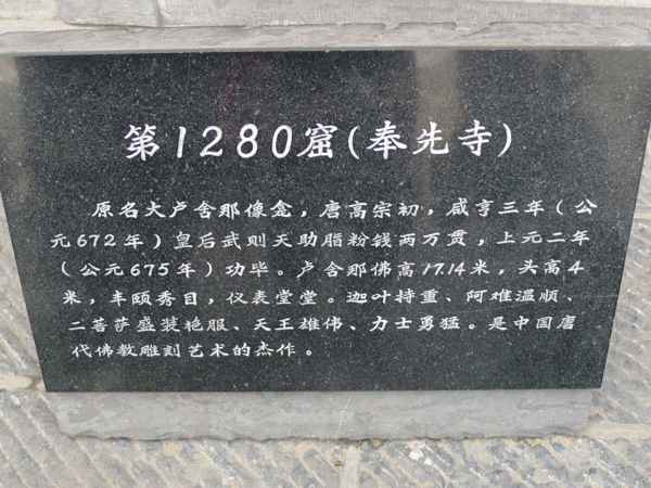 龍門石窟與莫高窟、雲岡石窟齊名,並列爲中國三大石窟。龍門石窟爲中國現存三大國寶級石窟寺之一。主要建於北魏年間,連續營造達400年之久,現存窟盒2000多座,佛塔40餘座佛像10萬多尊,堪稱古典雕刻藝術之寶庫。其中規模最大、名聲最響的是鑿于唐代武則天時期的奉先寺石窟,裏邊的佛像造型雍容典雅、面目傳神,所穿服飾紋路清晰、衣褶宛然。