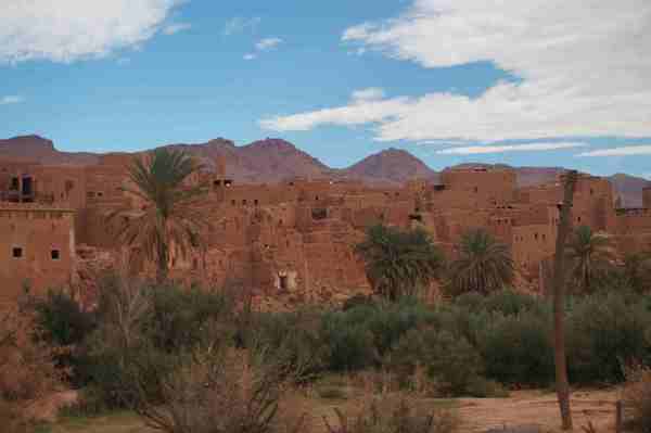 城堡大道,大道沿著大亞特拉斯山脈南部,沿途綿延不斷的綠色棕櫚樹與土造城堡,這些城堡是由朱紅色黏土所構成,曾經做為當地大家族族長的宅邸,大半建於17-18世紀,在一路荒煙的大漠中,最能突顯宏偉與壯觀,是摩洛哥最美、最吸引人的沙漠特殊景觀。