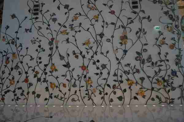 大廳裡一片光亮潔淨,純白的大理石牆和地板,攀滿彩磁作成的藤蔓雕花,柔和而細緻,
