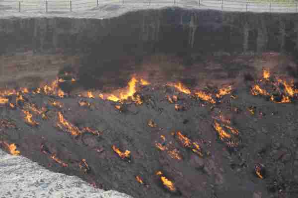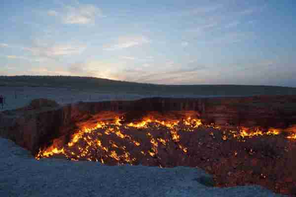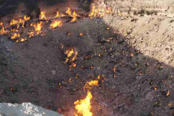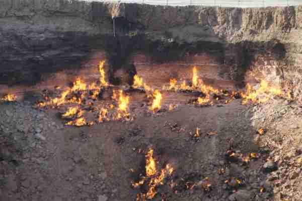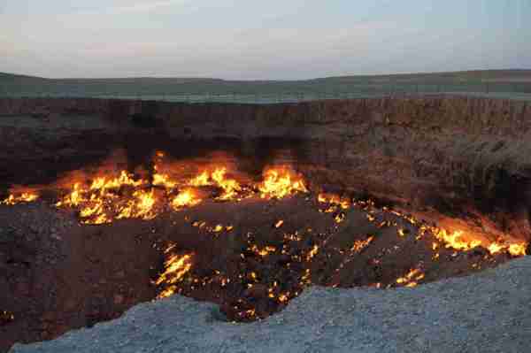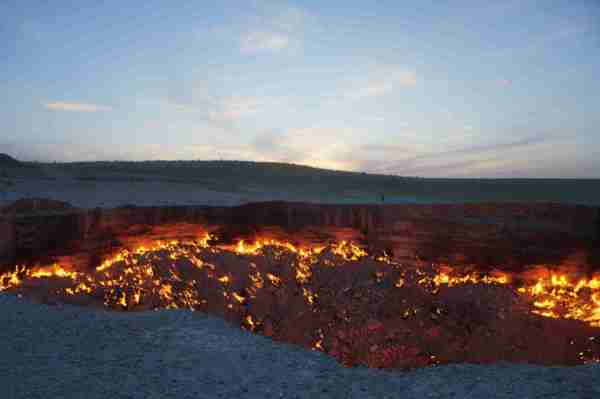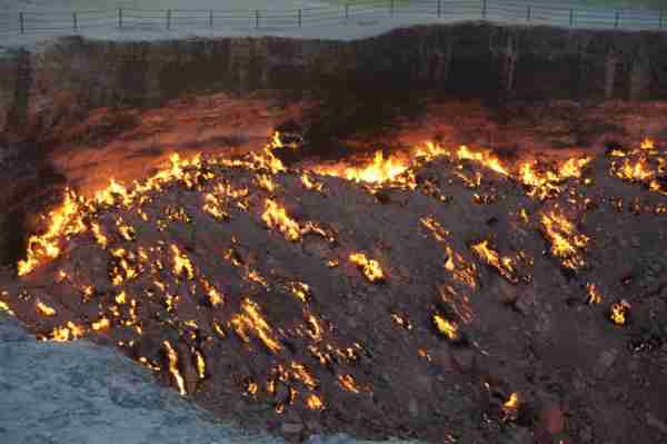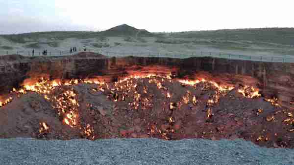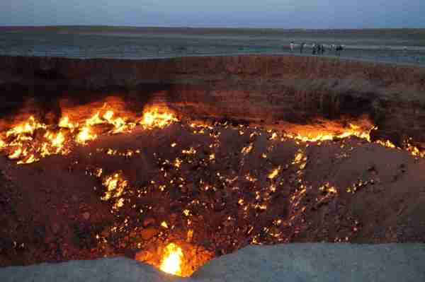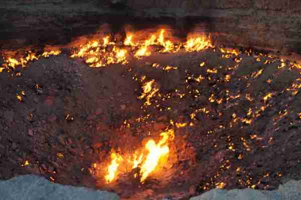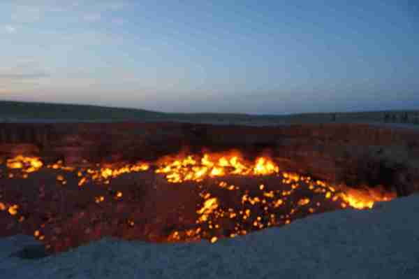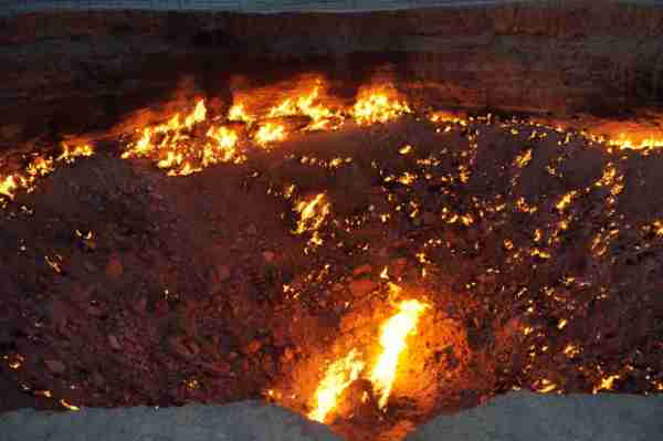 位於中亞的土庫曼(Turkmenistan),國土面積有80%被卡拉庫姆沙漠(Kara-Kum Desert)所覆蓋,在這個日夜溫差甚鉅的惡劣環境裡,時間回溯到西元1971年,當時的前蘇聯地質學家在此設置鑽探裝置,沒想到地表竟意外塌陷成為直徑100公尺的大洞,由於含有豐富天然氣,熊熊烈火迄今燒不停。洞內外神祕詭譎氛圍與壯闊的荒漠風情相輝映,外界給予它一個響亮封號叫做「地獄之門」(),當初一場「美麗的錯誤」,如今卻造就獨一無二的世界奇景,讓人看了無不嘖嘖稱奇。