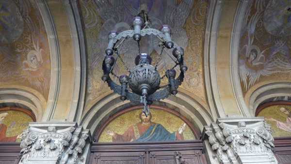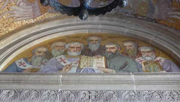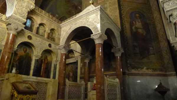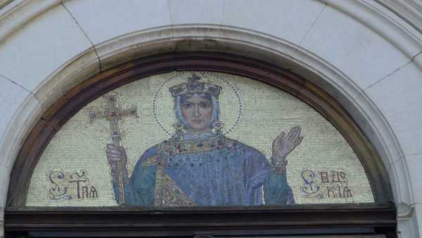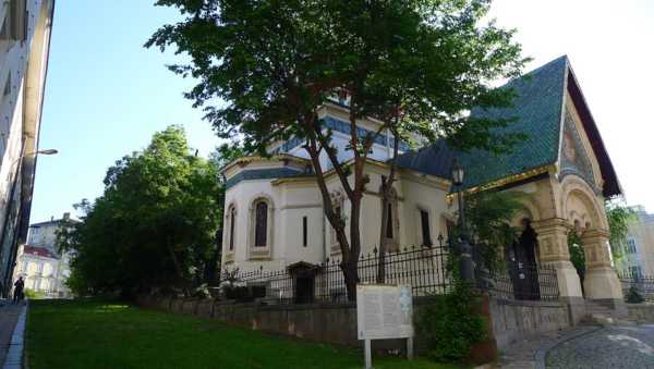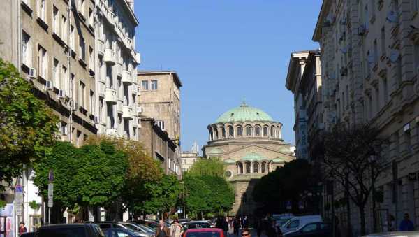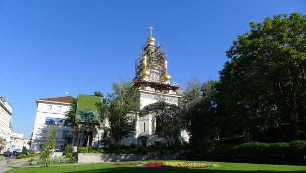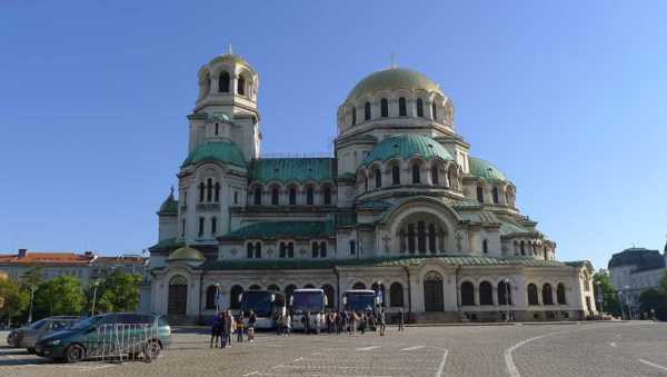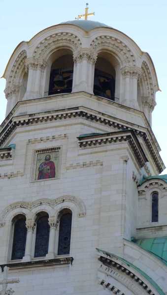 教堂拜占庭式大小五個圓拱屋頂,金碧輝煌,成為索菲亞的地標。