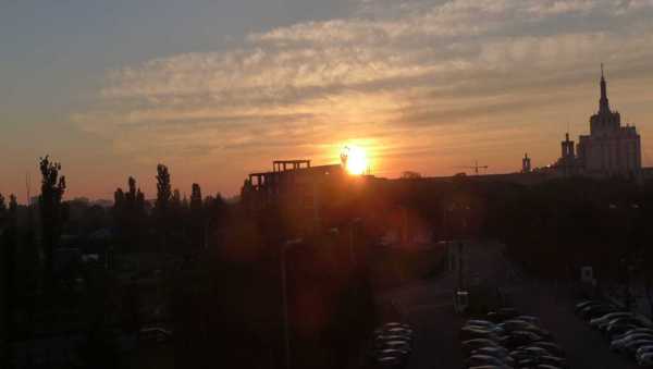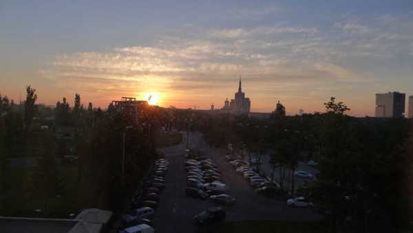 在房間望到這棟大樓 沐浴在晨光中