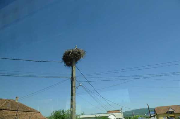 送子鳥在電線杆上做窩