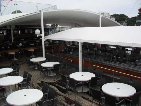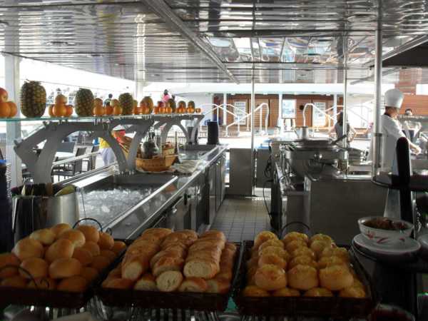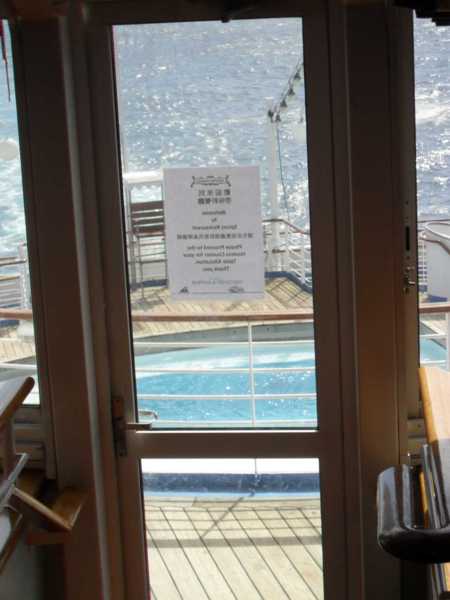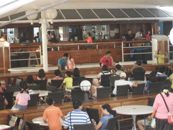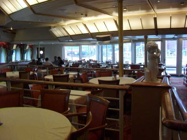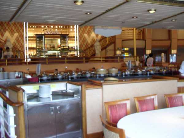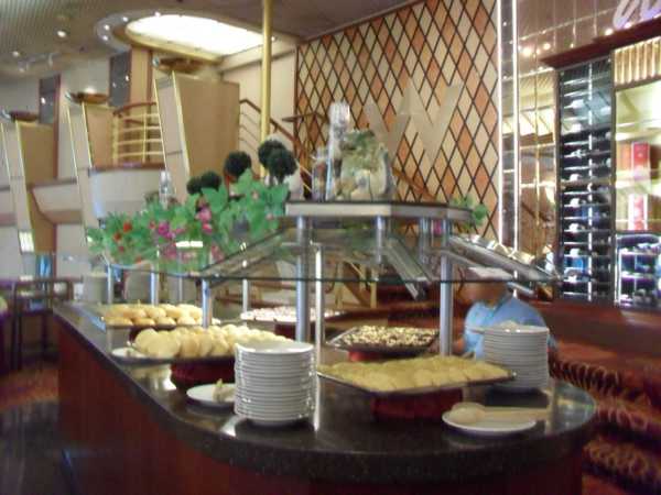 香味軒馬來自助餐廳與游泳池相連。其上方11樓船尾有王朝中式餐廳。