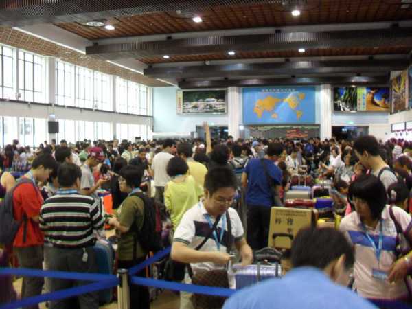 居然沒有直接驗關窗口。只好請工作人員把我們安插在適當的位置。