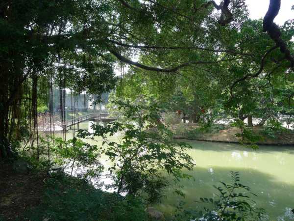 位在新竹公園內的「麗池」翠綠樹蔭倒映湖中,湖上白鵝清悠漫游,
