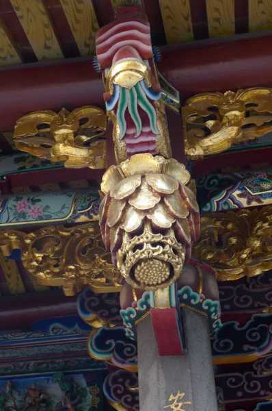 三川殿及正殿的吊筒皆伸出龍頭,也是同安、漳州及泉州一帶的手法,呈現出重大特色,