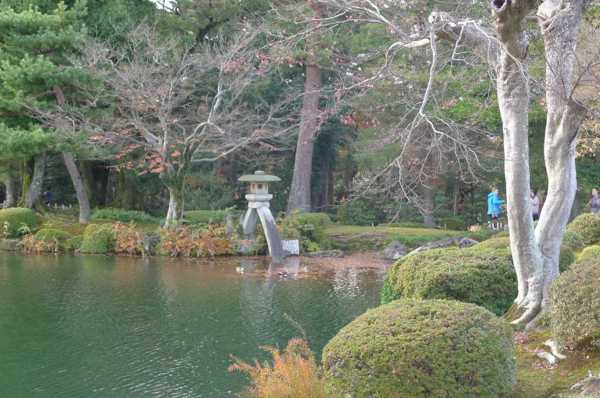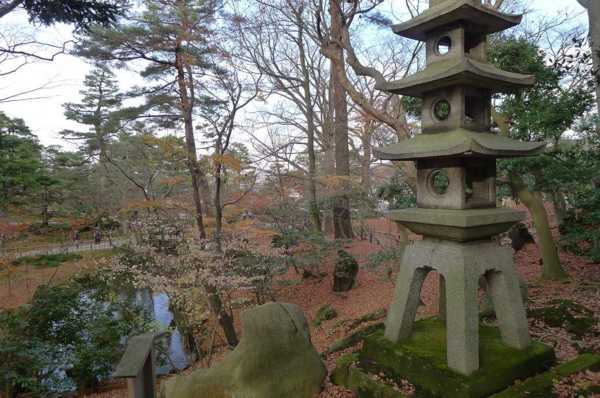在霞之池的池畔設有琴柱(用來調音色的用具)造型的燈籠,現在為代表兼六園的景觀之一,