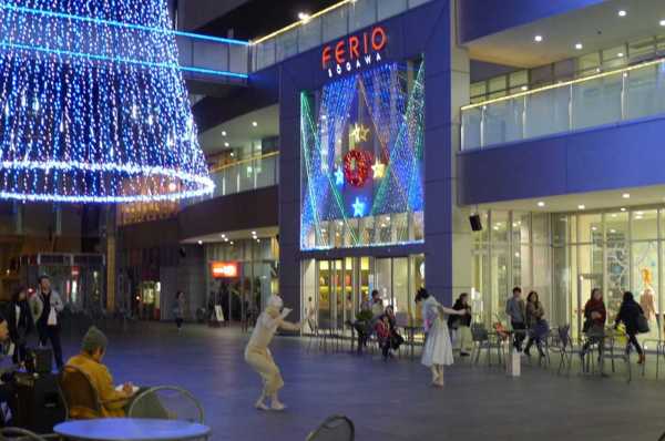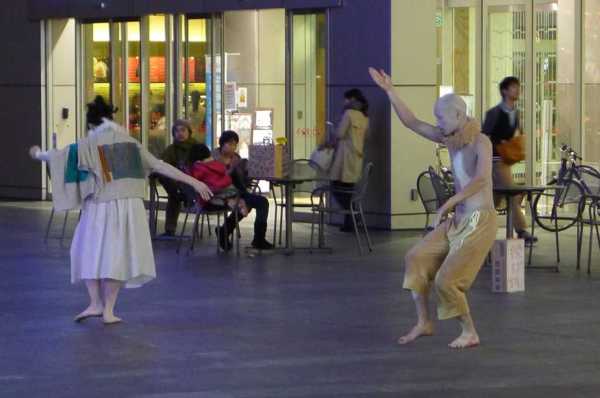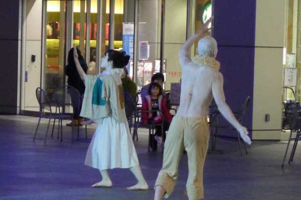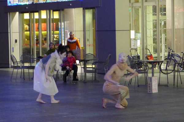 晚上七點半,百貨商場已打烊,但廣場上的表演還持續著。